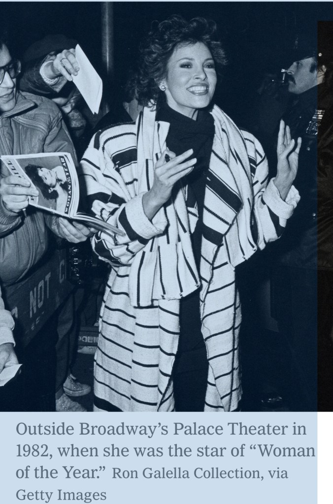 In 1981, she had a breakthrough when she replaced Lauren Bacall as the star of “Woman of the Year” on Broadway. Writing in The New York Times, the critic Mel Gussow called her a “show stopper,” adding that her performance was “in all respects marked by show-business know-how.” She stayed in the role for two years, her cave woman past a distant memory.