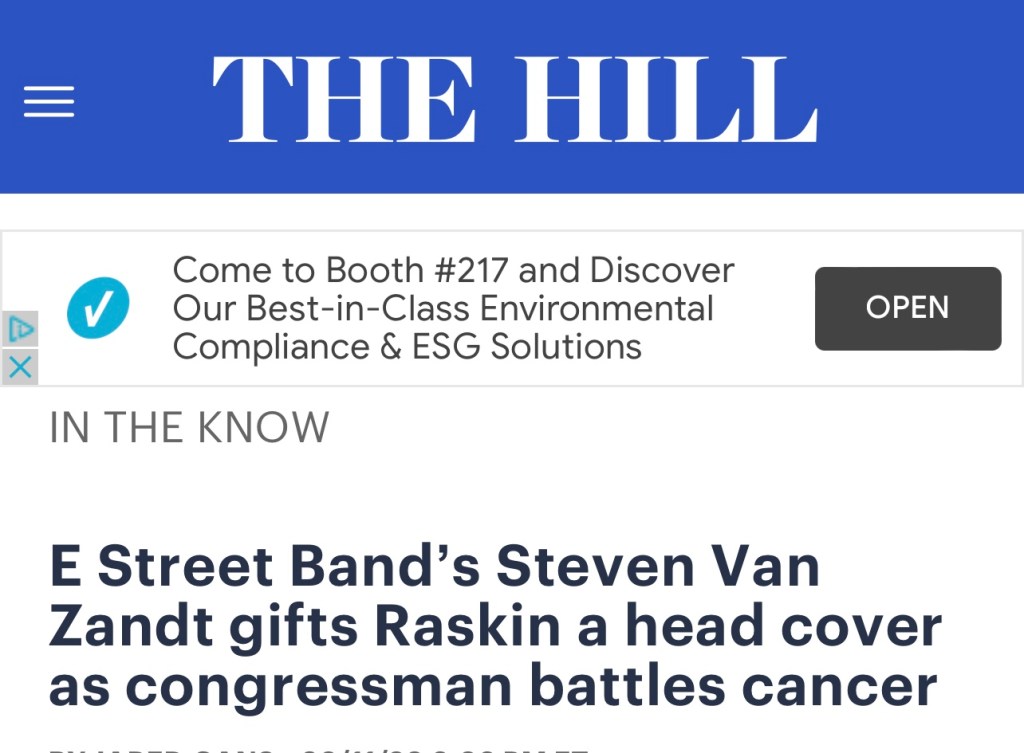 E Street Band’s Steven Van Zandt gifts Raskin a head cover as congressman battles cancer