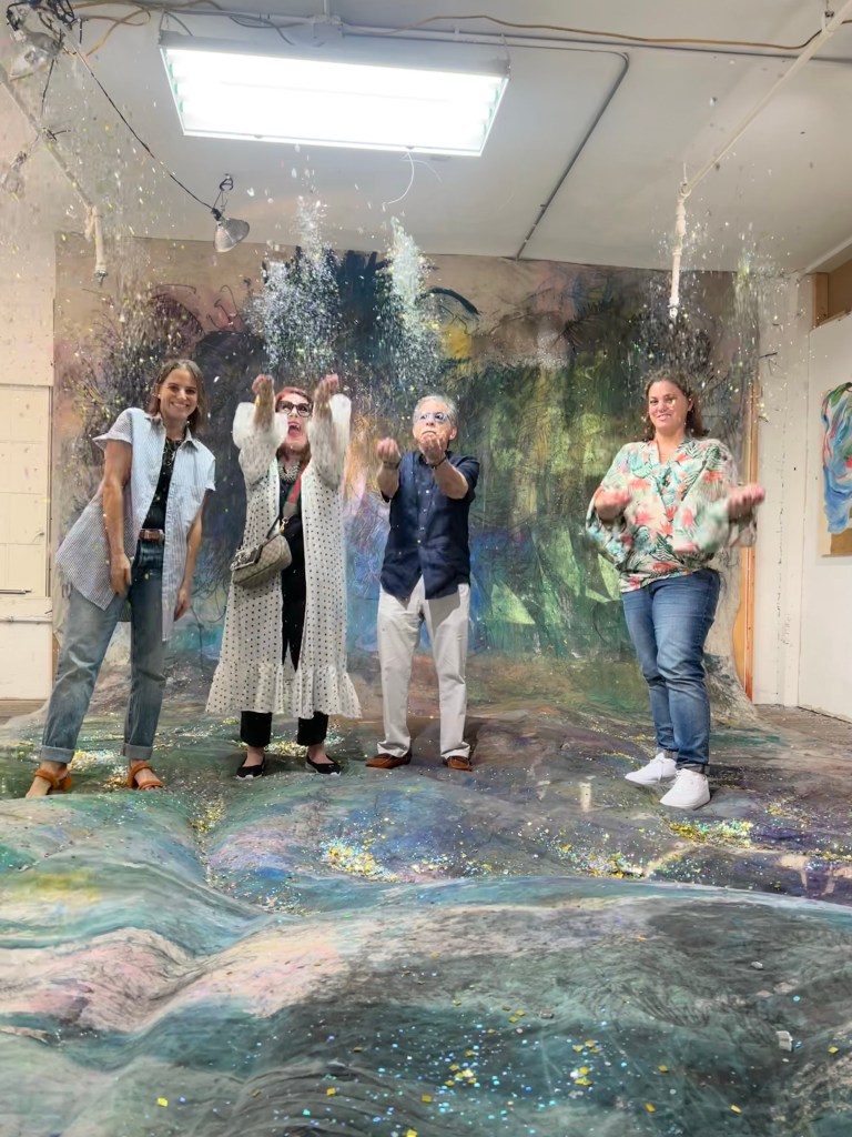 We finally got to experience Alex Nuñez’s award winning, brilliant and unique installation which uses canvas like you have never seen before. We were fully submersed in the scale of her work (16’ x 65’) which is currently being displayed at Fountainhead Studio. Alex, me, Eliot, Danielle Nuñez.