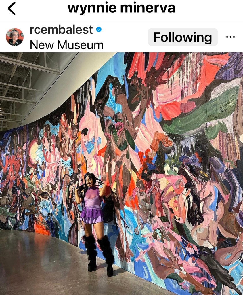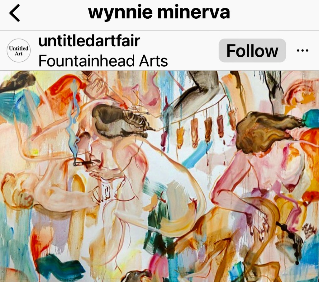 Eliot and I own a Wynnie Mynerva painting. We bought it at Untitled, one of the satellite art fairs during Art Basel in Miami, December 2019. We met Wynnie a few days before the art fairs began. She was a resident at Fountainhead Arts. We immediately liked their work. We had no idea at the time that Wynnie would have a major exhibit at the prestigious New Museum in lower Manhattan. We are so proud of them.