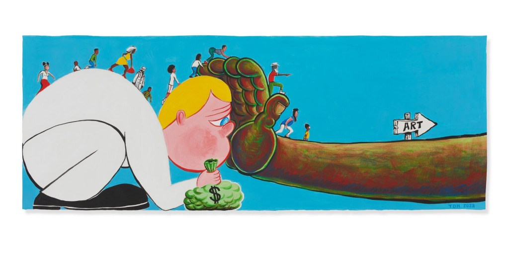 T commissioned the artist Trenton Doyle Hancock to make an original painting — “No, Only Black People Can Buy My Art” (2023) — about artists being more selective in the sale of their work.