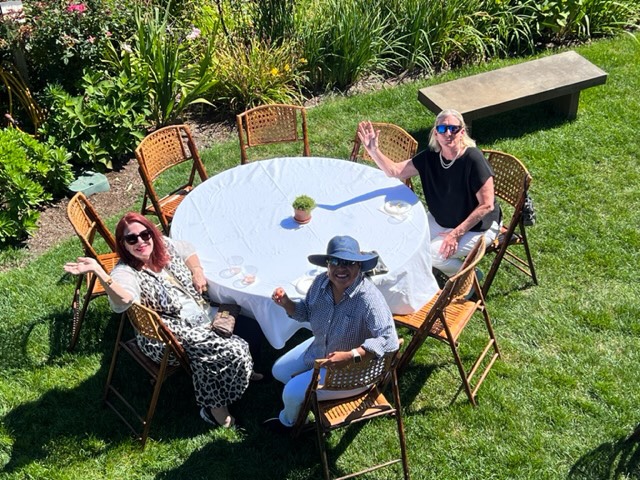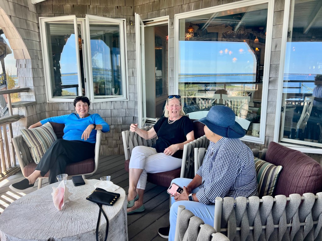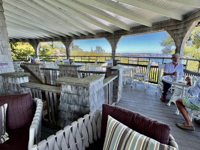 Gail Williams and Dawn McCall took us to the exclusive PAAM Circle garden party at the historic Land’s End Inn (22 Commercial Street) Provincetown. It was one of the most gorgeous places we have ever seen. We are going to spend a lot of time there next summer. We met owners Trevor Mikula and Ed Macri. Trevor is a local artist who shows his work at galleries around the country, including the William Scott Gallery in Provincetown. Ed DJs locally as Lazerella and previously had a career in technology, including 14 years as an executive at Wayfair. On Instagram, you can follow Trevor’s art @trevormikula and Ed’s DJ gigs @lazerellaptown. They have put a long-term ownership structure around the Inn that ensures it is enjoyed by the public and supports the local arts and LGBTQIA communities for generations to come. Hallelujah!