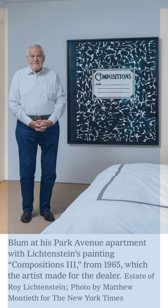Blum called Lichtenstein, a friend of his, and said he needed to see the Pop artist. “He said, ‘How urgent?’” Blum recalled. “I said, ‘Life or death.’ He said, ‘Come on over.’”