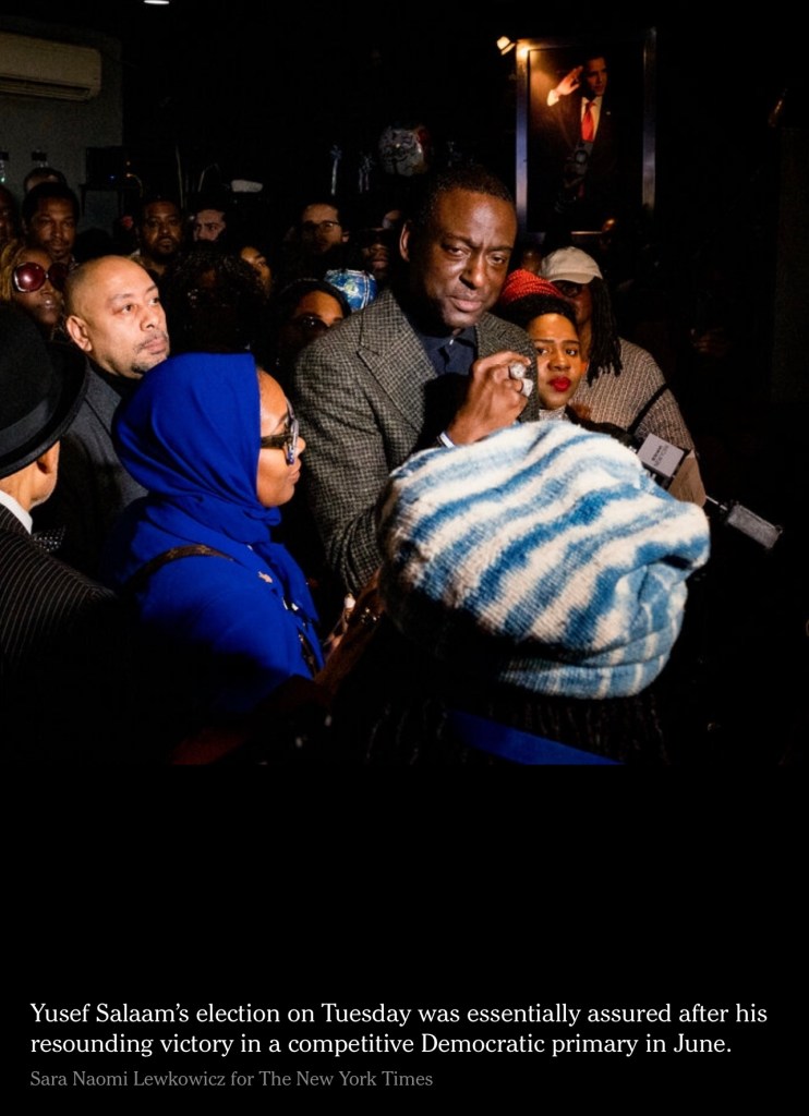 Mr. Salaam, who ran unopposed, had won a commanding victory in a contested Democratic primaryin June, when he defeated two sitting members of the New York State Assembly. The Democratic incumbent who currently holds the Council seat, Kristin Richardson Jordan, dropped out of the race before the primary.