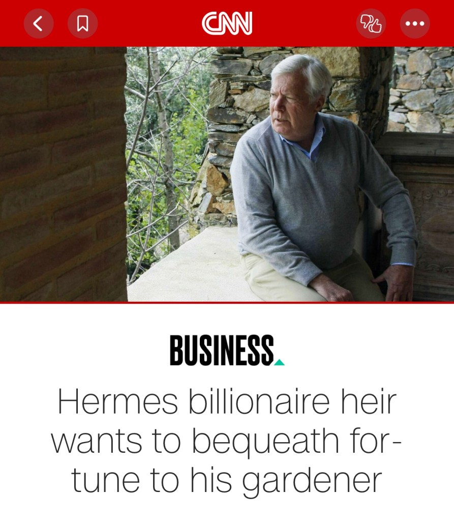 Nicolas Puech, 80, a fifth-generation descendant of the founder of French luxury goods company Hermes, wants to cancel a contract that would bequeath his fortune to the Isocrates Foundation, which he founded, and instead make his employee a legal heir.