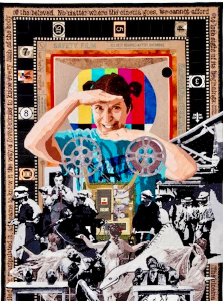 That is exactly why Robin has become so popular. She loves combining her graphically compelling quilts with the digital realm of manipulated photography. She then adds the extremely analog craft of stenciling, screen-printing, patchwork, appliqué and quilting. She also explores the rich variety of the written word, balancing an appreciation of their abstract beauty with the desire to include the “found art” of relevant texts. Subject matter might be drawn from her travels; the urban environment; film and/or video technology; or even mannequins.