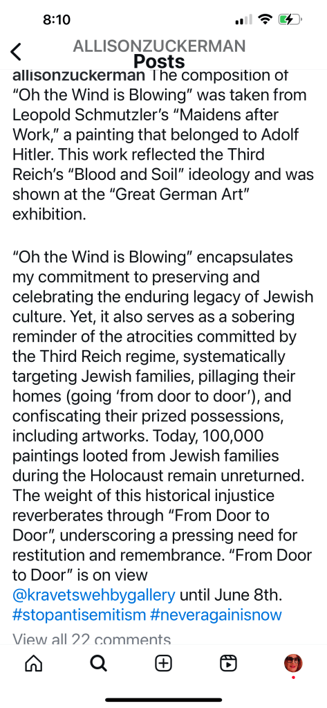 I can’t believe that this specific @allisonzuckerman piece will reside in our home. Read Allison’s explanation. Thank you @eliothess for sharing the same artistic and life goals, thank you Jewish people for being so strong, loving and accomplished, thank you Richard Ekstract for taking me out of my small world, thank you @fountainheadarts for a full enriched life when I needed it most, thank you @lbweissman for making this happen and being so kind, thank you Allison and @kravetswehbygallery kravetswehbygallery for this beauty.