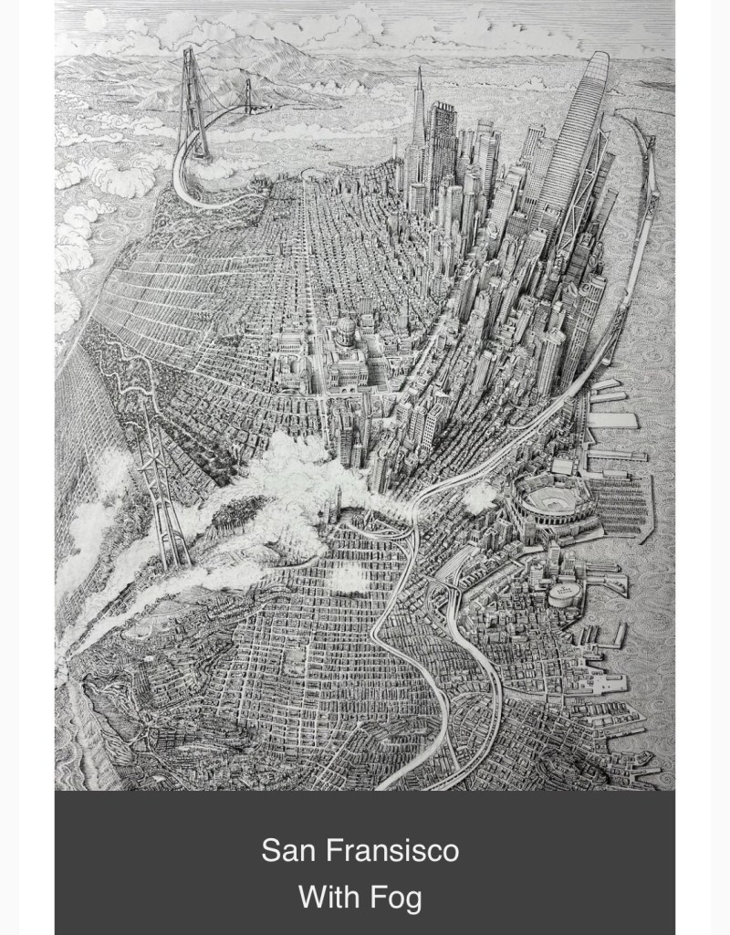 Throughout this time as well, I was able to execute a few drawings of some of America’s most charming metropolises, both as commission works and as personal projects. I’m now left with a hunger to capture all of the country’s cities, much like Auduban did with his encyclopedic compendium of the bird’s of America. So, if you’d like to commission a city to be drawn from my particular angle, I would be happy to execute such [artist winks convincingly].