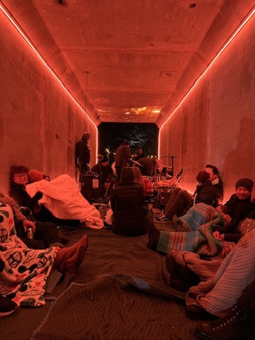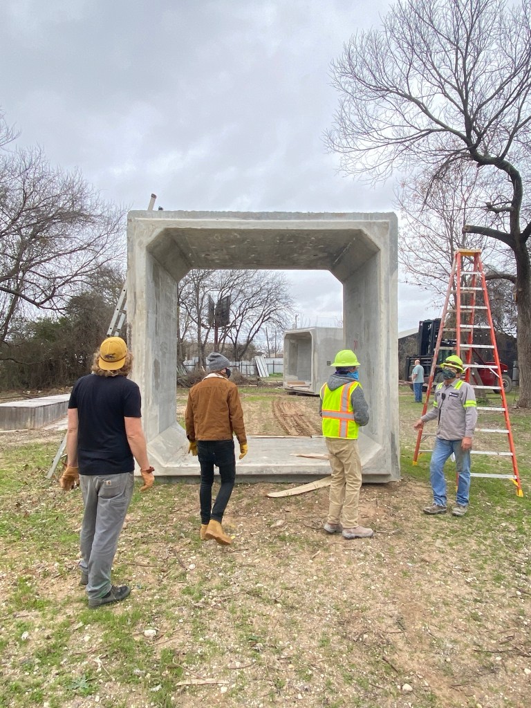 Click below to hear all about Co-Lab, the art gallery housed inside five massive concrete culverts, structures that usually carry water underground—gifted by a neighboring concrete factory. Leslie, and partner Sean Gaulager, along with their team, transformed the concrete culverts into an imaginative and unconventional exhibition space on an acre of Texas land).