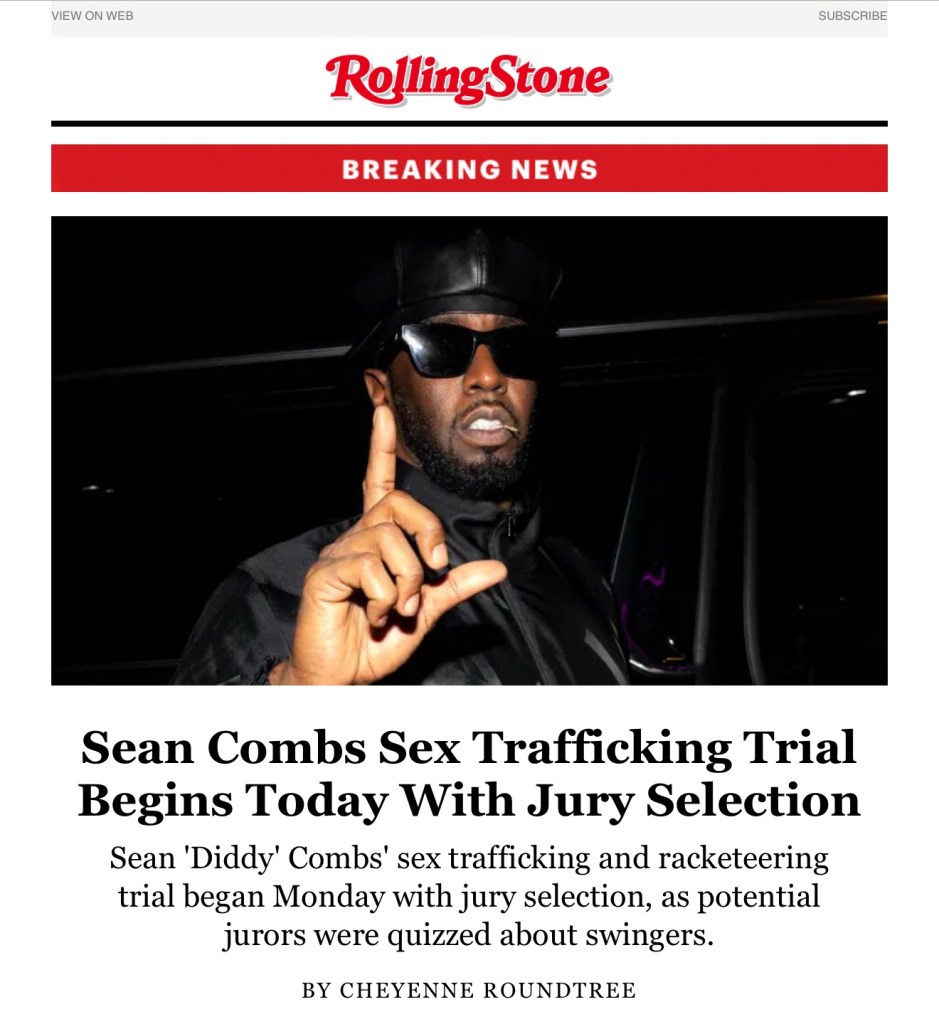 Jury selection in Sean Combs’ sex trafficking and racketeering criminal trial will begin Monday, as both the hip-hop mogul’s high-powered defense team and Southern District of New York prosecutors are expected to quiz prospective jurors on their feelings about wealthy individuals and Combs’ self-described “swinger” lifestyle. Both sides will begin the process of whittling down 150 peopleinto a final jury pool of 12 men and women and six alternates for the celebrity criminal trial that is expected to last at least eight weeks. Jury selection is expected to last three days and opening statements are set for Monday, May 12.