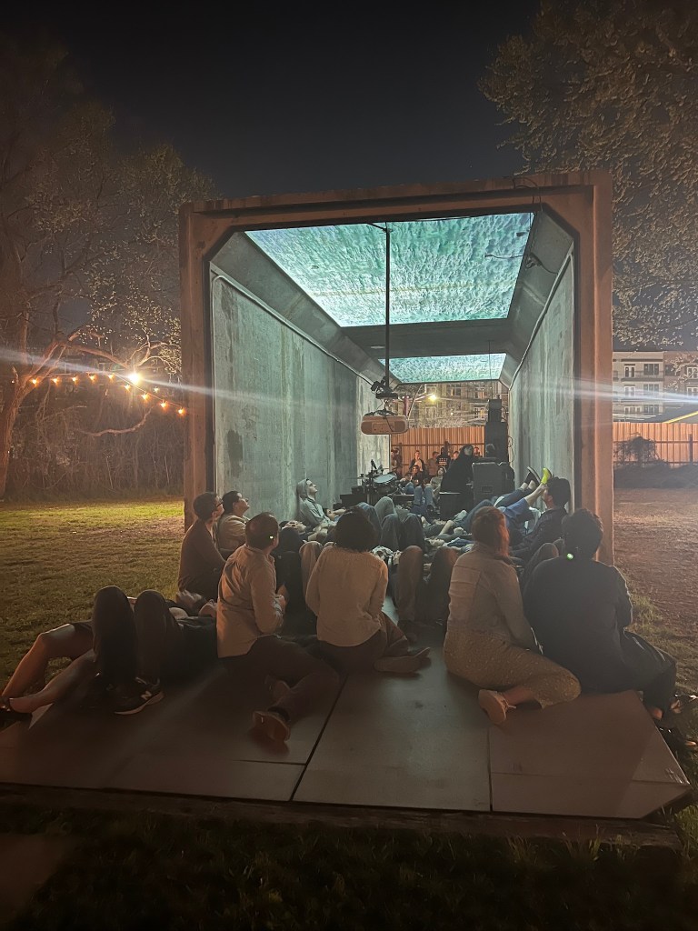For nearly two decades, Leslie has produced and curated projects across Mexico and the United States, always with an eye toward creating spaces for dialogue and exchange. She’s the co-founder of Unlisted Projects Residency and Co-Lab Projects, a unique, artist-run nonprofit in Austin dedicated to experimental and collaborative art. (Fun fact: Co-Lab is housed inside five massive concrete culverts)—those structures that usually carry water underground—gifted by a neighboring concrete factory. Leslie, and partner Sean Gaulager, along with their team transformed the concrete culverts into an imaginative and unconventional exhibition space on an acre of Texas land).