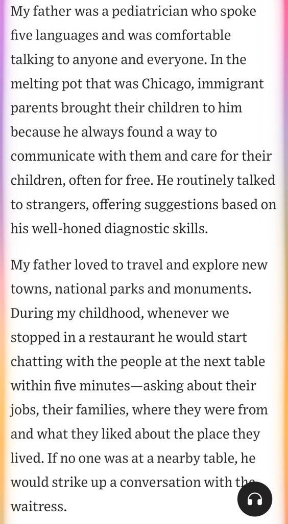 Thank you, Lois, for sharing this. I don’t comment often enough, but this one really touched me. It is also proof that you and Eliot are going to live to be 125 years old!!!!