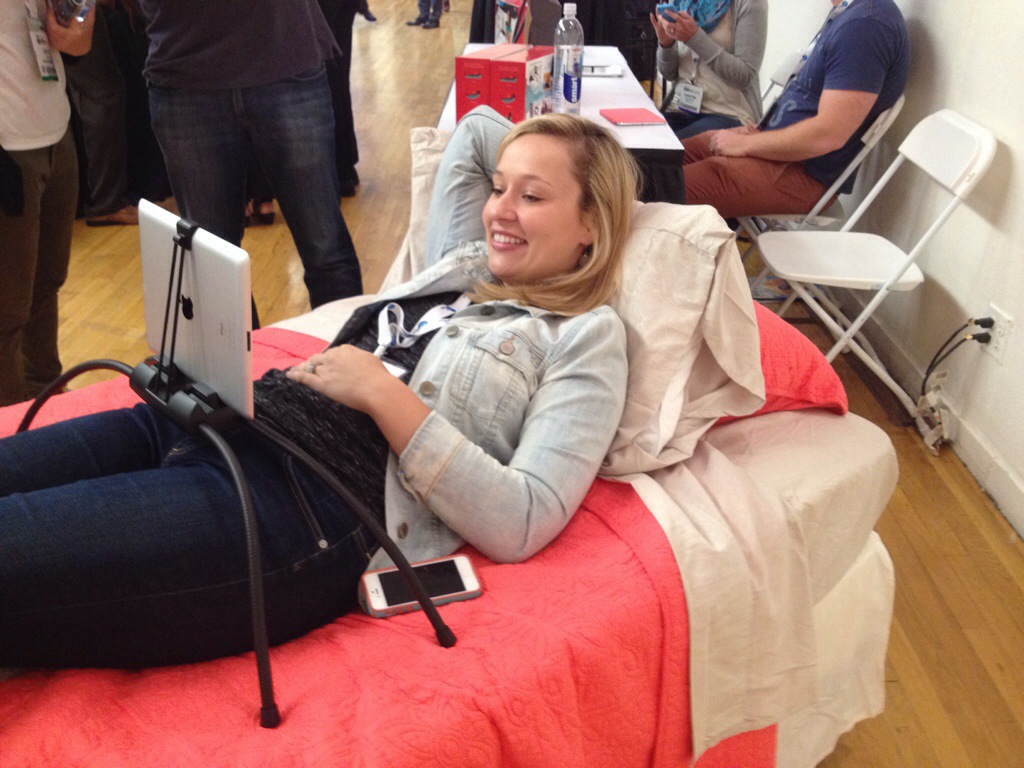 I'm actually on my back right now as I type away. I'm holding my iPhone with my right hand and my left hand is clicking the keys. All this may change now that I saw the Tablift at CE Week.The Tablift by nbryte was designed to hold a smartphone or tablet for the person who likes to hang out on the couch or in bed.