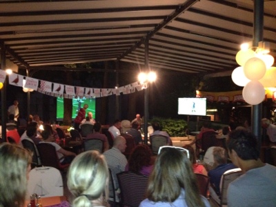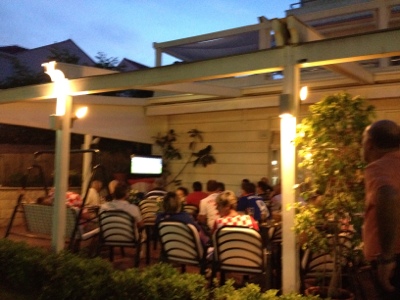 I have attached photos from some of the bars and restaurants so you can see how people gather together to watch TV events outdoors.