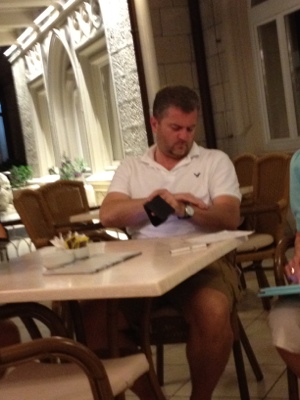 Being the snoop I am, I took a picture of what I thought was a Croatian family all glued to their personal electronics. It was almost midnight when I spotted them. Eliot and I, along with Ruth and Howard Greenberg, were having White Coffee (the term we use so Croatians know not to make it strong) on the veranda at our hotel in Dubrovnik, The Lapad.