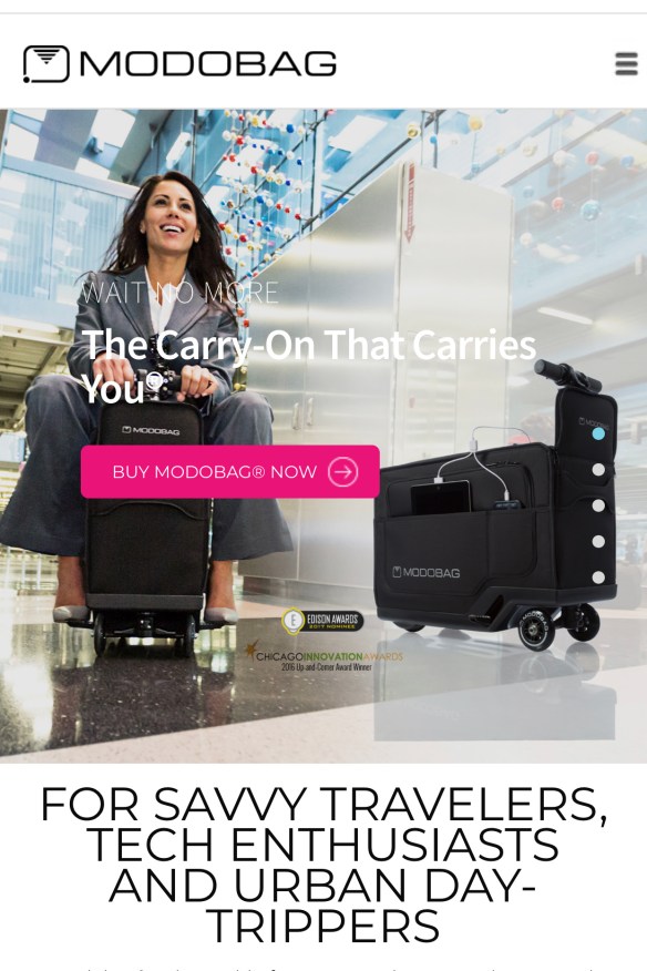 Modobag will be at CES in Las Vegas this January demonstrating its motorized, rideable capabilities. Modobag claims it will get you to your destination up to three times faster than walking.