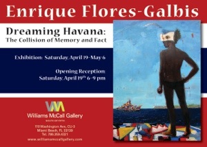 This week I was working on getting some TV coverage for Enrique Flores-Galbis, a Cuban born landscape and portrait painter. His work, “Dreaming of Havana,” is on display at the Williams McCall Gallery in South Beach, FL. The invitation to the opening is posted above. Born in Havana, he left in 1961 with Operation Pedro Pan arriving alone in South Florida at the age of 9. Also a novelist, his award-winning book, 90 Miles to Havana, was based on the events that led to his departure and the life he encountered in the U.S.